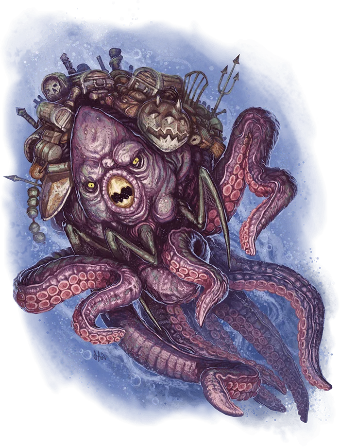 - **Alter Water.** With a thought (no action required), the morkoth can initiate a change in the water within its lair that takes effect 1 minute later. The water can be as breathable and clear as air, or it can be normal water (ranging in clarity from murky to clear).