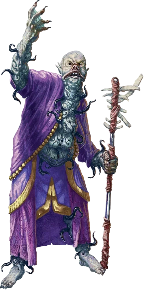 A star spawn seer is most often encountered as the leader of a cult dedicated to one or more Elder Evils. Usually, the seer is the only cult member that grasps the full extent of the horror the cult is venerating. The seer’s goal is to tap into vast energy sources and perform the dire rites that will extend a bridge between the Material Plane and the squirming chaos of an Elder Evil’s realm.