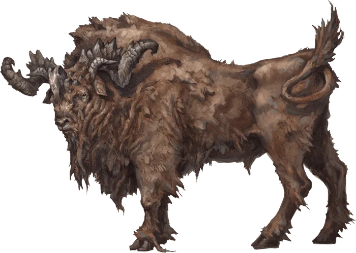 ***Gore.*** *Melee Weapon Attack:* `+7` to hit, reach 5 ft., one target. *Hit:* 14 (`2d8 + 5`) piercing damage. If the aurochs moved at least 20 feet straight toward the target immediately before the hit, the target takes an extra 9 (`2d8`) piercing damage, and the target must succeed on a DC 15 Strength saving throw or be knocked [prone](Mechanics/CLI/rules/conditions.md#Prone) if it is a creature.Environment