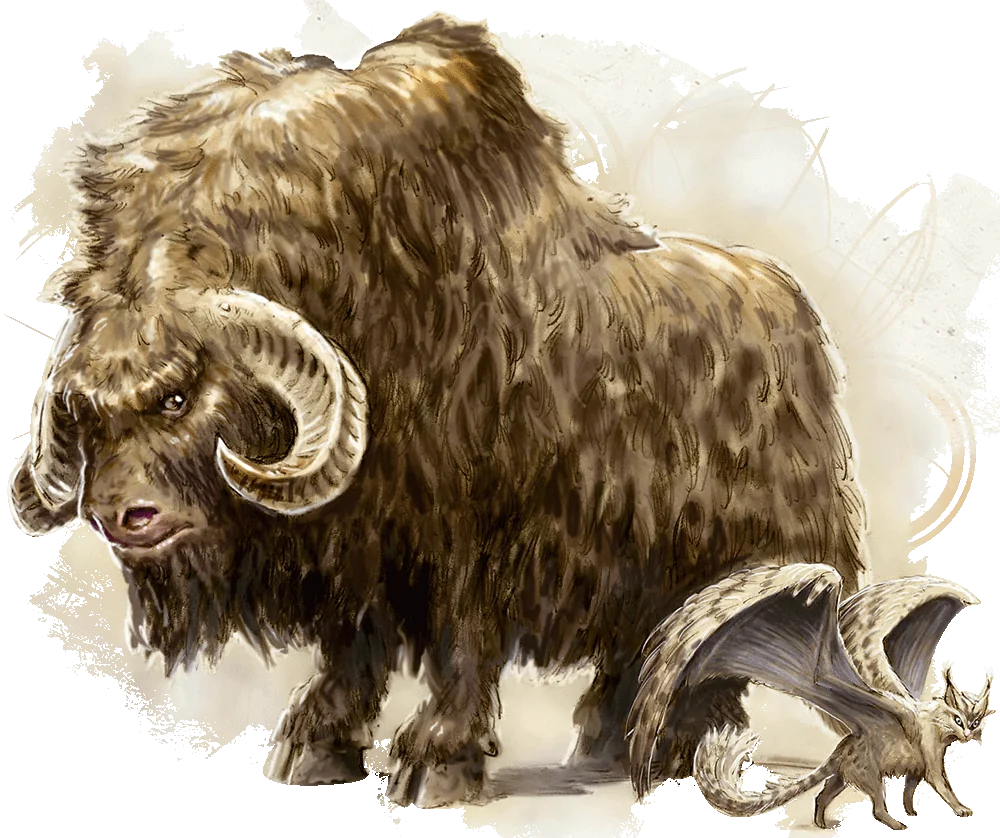 ***Gore.*** *Melee Weapon Attack:* `+6` to hit, reach 5 ft., one target. *Hit:* 7 (`1d6 + 4`) piercing damage. If the rothé moved at least 20 feet straight toward the target immediately before the hit, the target takes an extra 7 (`2d6`) piercing damage.