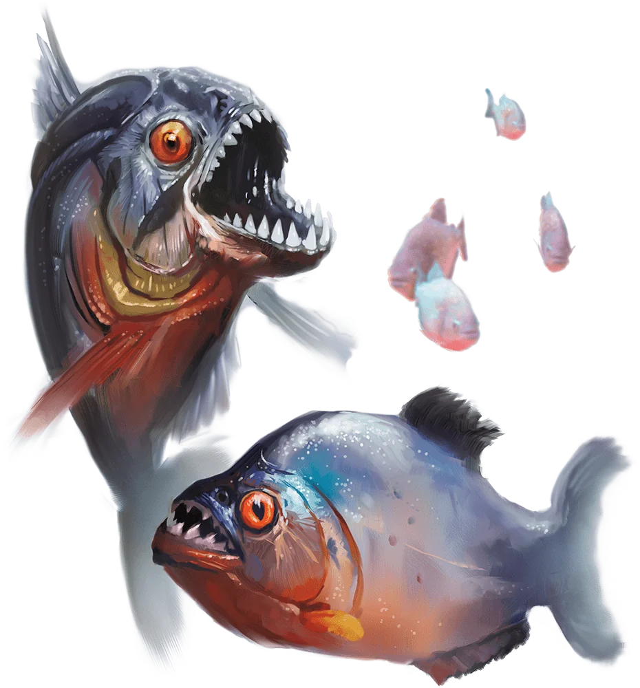 ***Bites.*** *Melee Weapon Attack:* `+5` to hit, reach 0 ft., one creature in the swarm's space. *Hit:* 14 (`4d6`) piercing damage, or 7 (`2d6`) piercing damage if the swarm has half of its hit points or fewer.Environment