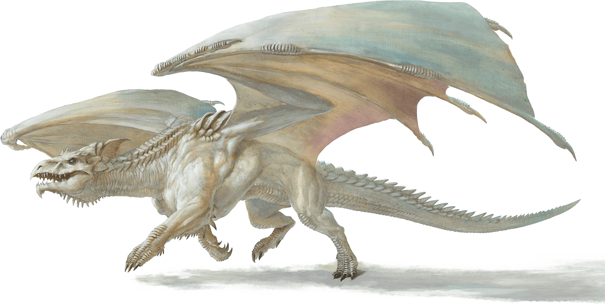 The smallest, least intelligent, and most animalistic of the chromatic dragons, white dragons dwell in frigid climes, favoring arctic areas or icy mountains. They are vicious, cruel reptiles driven by hunger and greed.