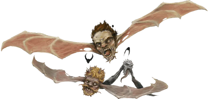 Shrieking, flapping, and hideous to behold—with a body like a severed head and wings in place of ears—vargouilles boil out of the Abyss to infest other planes of existence, such as Carceri, where they are a menace. Each vargouille carries a disease that creates more of its kind; a flock of vargouilles on the wing is a plague of chaos and evil.