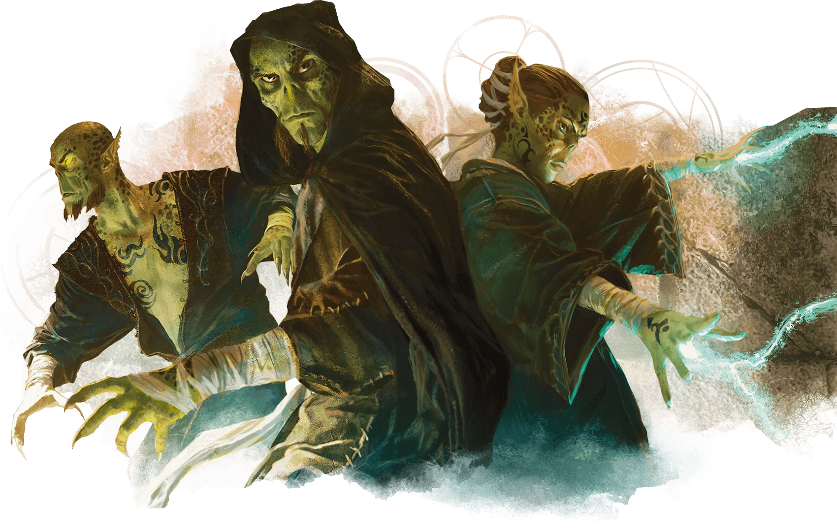 Githzerai are otherworldly folk with psionic powers who share an ancestral link to githyanki (also in this book). The githzerai followers of the great leader Zaerith Menyar-Ag-Gith are an ascetic people who live apart from the rest of the cosmos, within the confines of fortresses floating through the chaos of Limbo. Instead of imposing their will on other peoples, they focus on controlling and manipulating their endlessly malleable home.