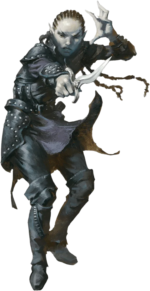 Eons of exposure to the influence of the Shadowfell has left shadar-kai often joyless and mournful. In that realm, they have pale hair, wrinkled gray skin, and swollen joints that give them a corpselike aspect. They appear more youthful while on other planes, but their skin always retains a deathly ashen hue. When in the Shadowfell, they detest mirrors and avoid keeping things that remind them of their age.