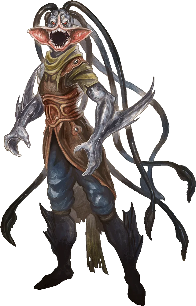 A deep scion emerges from the depths in service to their underwater master, which is likely a kraken or some other ancient being of the deep. While wearing the mind and body of the person they once were as a sort of mask, the creature is bent on fulfilling their master’s desires. Sometimes a deep scion returns to their former home—unexpectedly found alive when all hope was lost. At other times the deep scion takes on a new identity. In any case, it is the deep scion’s duty to infiltrate the air-breathing world and report back to their master. When set to this task, a deep scion worms their way into the life of an unsuspecting enemy as a new friend, a lover, the perfect candidate for a job, or some other role that enables the minion to carry out their master’s commands.