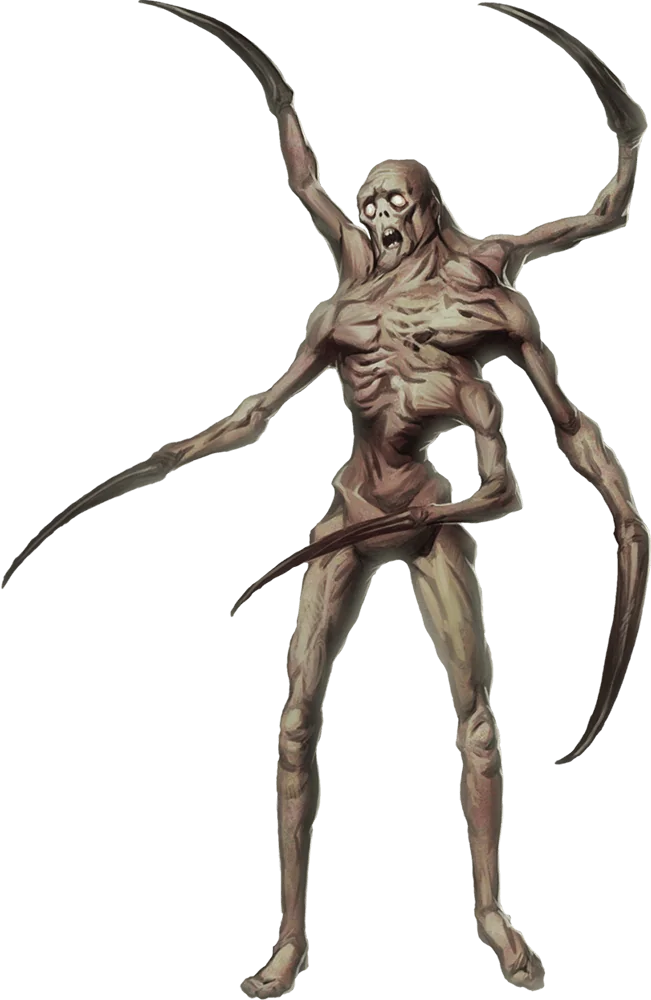 The Shadowfell’s pervasive melancholy sometimes gives rise to strange incarnations of the plane’s bleak nature. Sorrowsworn embody the forms of suffering inherent to the shadowy landscape and visit horror on those who stumble into their midst. Each sorrowsworn personifies a different aspect of despair or distress.