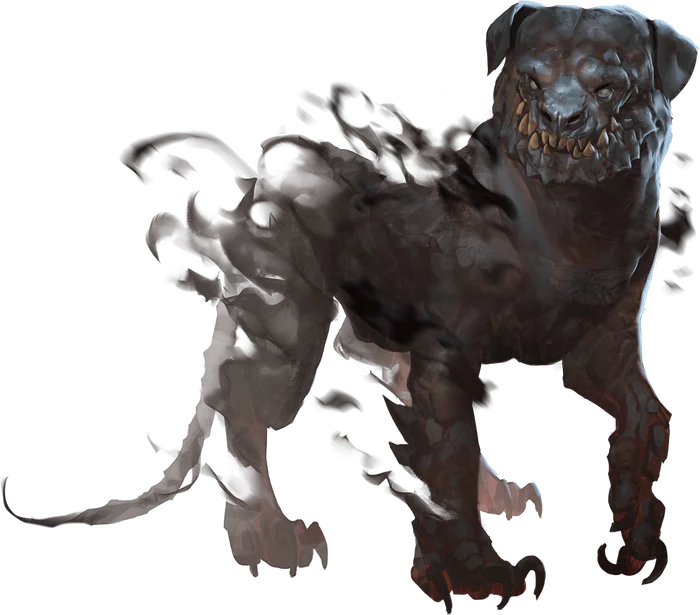Shunning sunlight, these hounds are usually met as a pack. Some faiths devoted to deities of gloom and night, such as that of Shar in the Forgotten Realms, perform unholy rites to summon shadow mastiffs to work as temple sentinels and bodyguards.