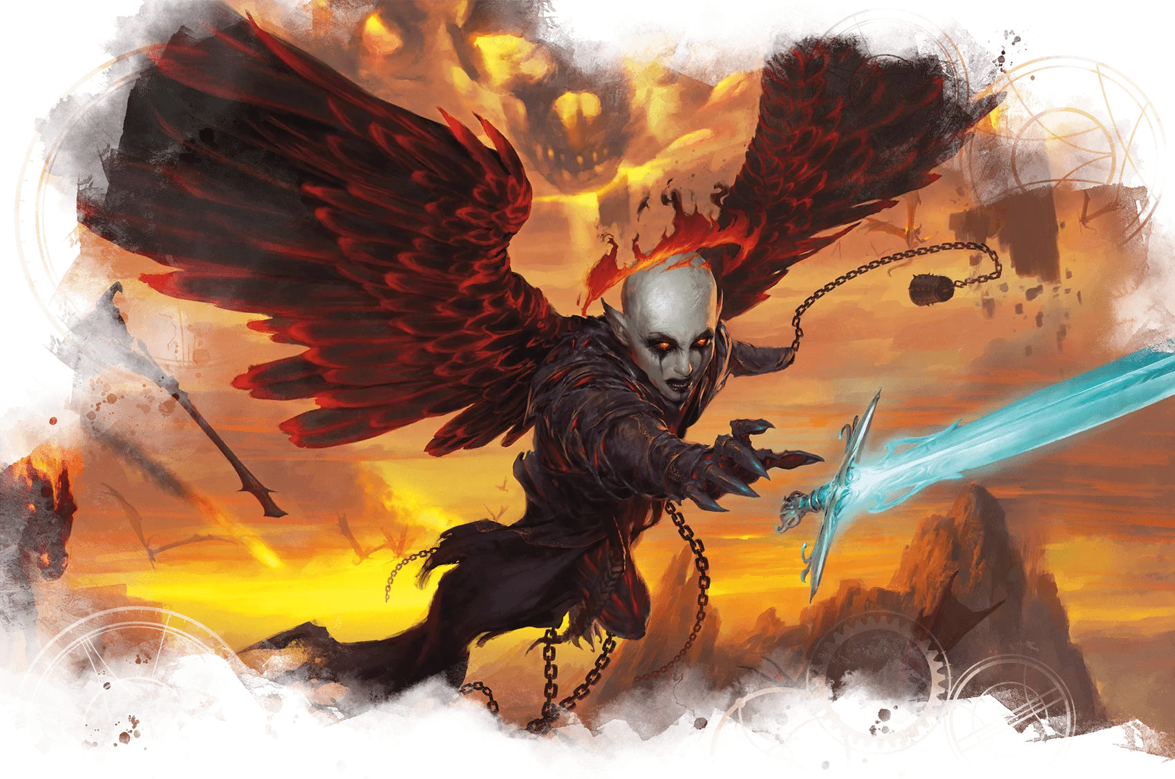 Once a mighty angel charged with watching the tides of the Blood War, Zariel succumbed to the corrupting influence of the Nine Hells and fell from grace. Asmodeus admired Zariel’s passion for war and offered her rulership of Avernus. She accepted his offer, and he transformed her into an archdevil.