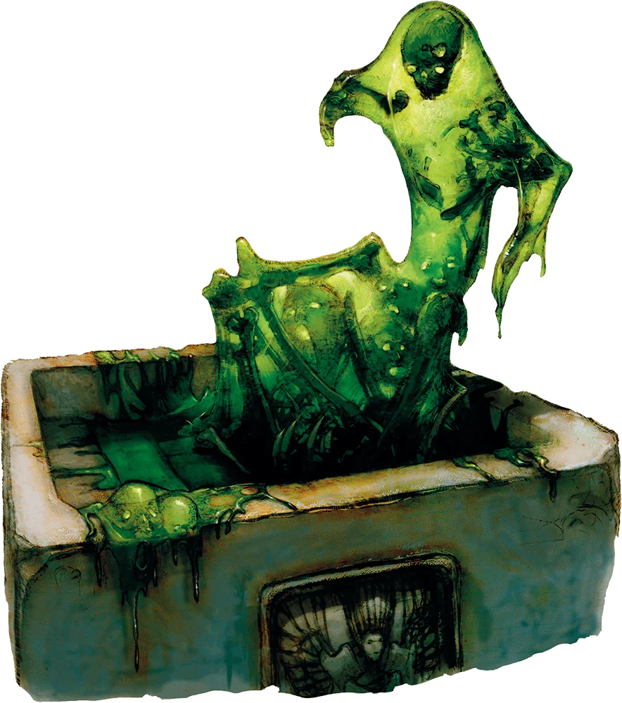 By experimenting on the slimes, jellies, and puddings that infest the depths of the Underdark, mind flayers created a special breed of Ooze, the oblex—a slime capable of assaulting the minds of other creatures. These pools of jelly are cunning hunters that feed on thoughts and memories. The sharper the mind, the better the meal, so oblexes hunt targets more likely to be intelligent, such as wizards and other spellcasters. When suitable fare comes within reach, an oblex draws its body up to engulf its victim. As it withdraws, it plunders the creature’s mind, leaving its prey befuddled and confused—or dead.