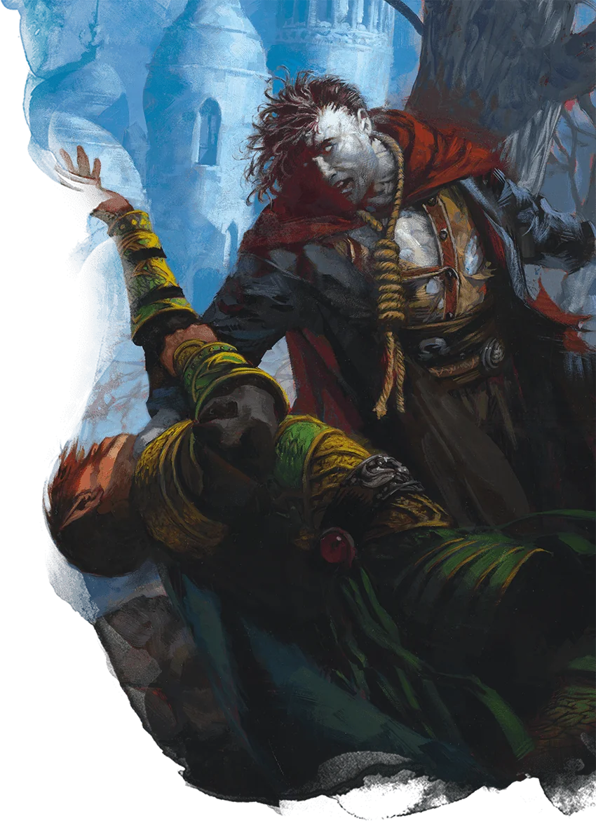 A revenant forms from the soul of a mortal who met a cruel and undeserving fate. It claws its way back into the world to seek revenge against the one who wronged it. The revenant reclaims its mortal body and superficially resembles a zombie. However, instead of lifeless eyes, a revenant’s eyes burn with resolve and flare in the presence of its adversary. If the revenant’s original body was destroyed or is otherwise unavailable, the spirit of the revenant enters another humanoid corpse. Regardless of the body the revenant uses as a vessel, its adversary always recognizes the revenant for what it truly is.