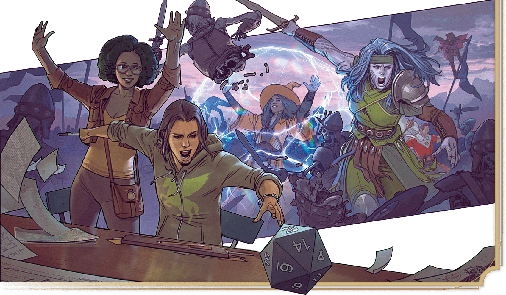 Part of the fun of D&D is interpreting what die rolls mean in the story. The randomness that dice bring often introduces the unexpected: an expert fails, a novice succeeds, or any number of other twists. When a D20 Test or another roll produces a surprise, the Dungeon Master often gives a fun description of what happened. If you’re a player, look for opportunities to interpret your character’s die rolls and describe why things unfolded unexpectedly or even humorously.
