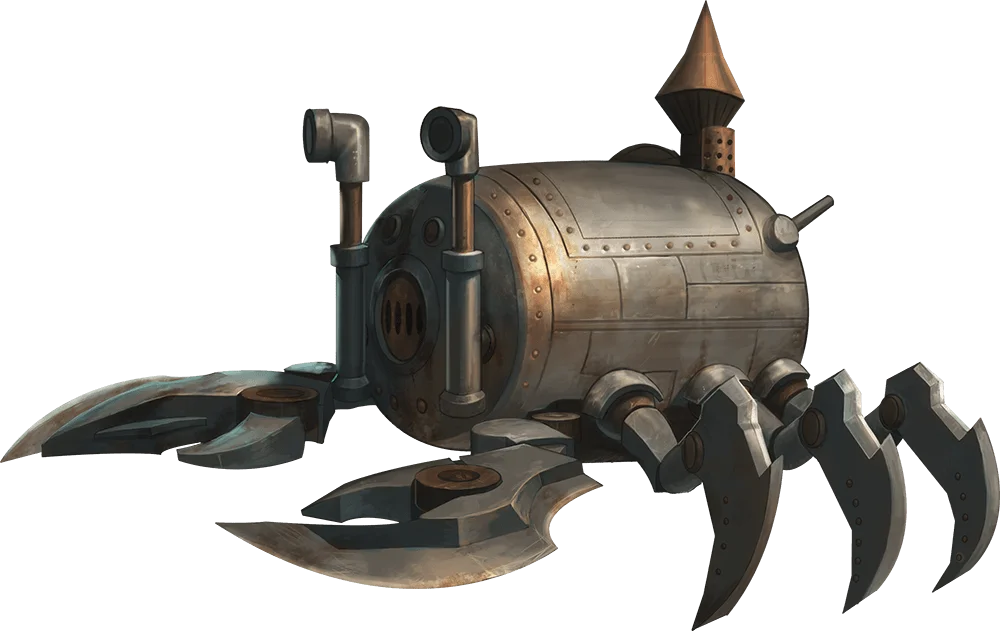 This item first appears to be a Large sealed iron barrel weighing 500 pounds. The barrel has a hidden catch, which can be found with a successful DC 20 Intelligence (Investigation) check. Releasing the catch unlocks a hatch at one end of the barrel, allowing two Medium or smaller creatures to crawl inside. Ten levers are set in a row at the far end, each in a neutral position, able to move either up or down. When certain levers are used, the apparatus transforms to resemble a giant lobster.