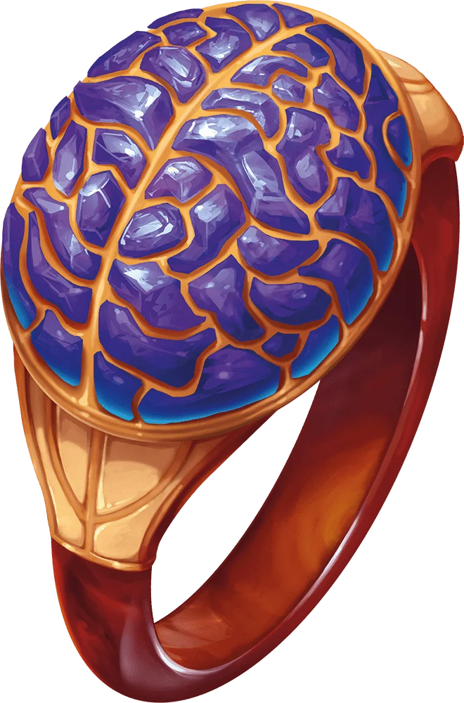While wearing this ring, you are immune to magic that allows other creatures to read your thoughts, determine whether you are lying, know your alignment, or know your creature type. Creatures can telepathically communicate with you only if you allow it.