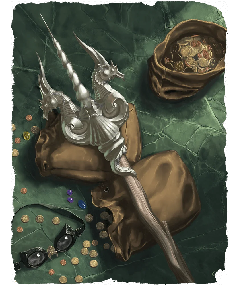 Wave zealously desires to convert mortals to the worship of one or more sea gods, or else to consign the faithless to death. Conflict arises if the wielder fails to further the weapon’s objectives in the world. The trident has a nostalgic attachment to the place where it was forged, a desolate island called Thunderforge. A sea god imprisoned a family of storm giants there, and the giants forged Wave in an act of devotion to—or rebellion against—that god.