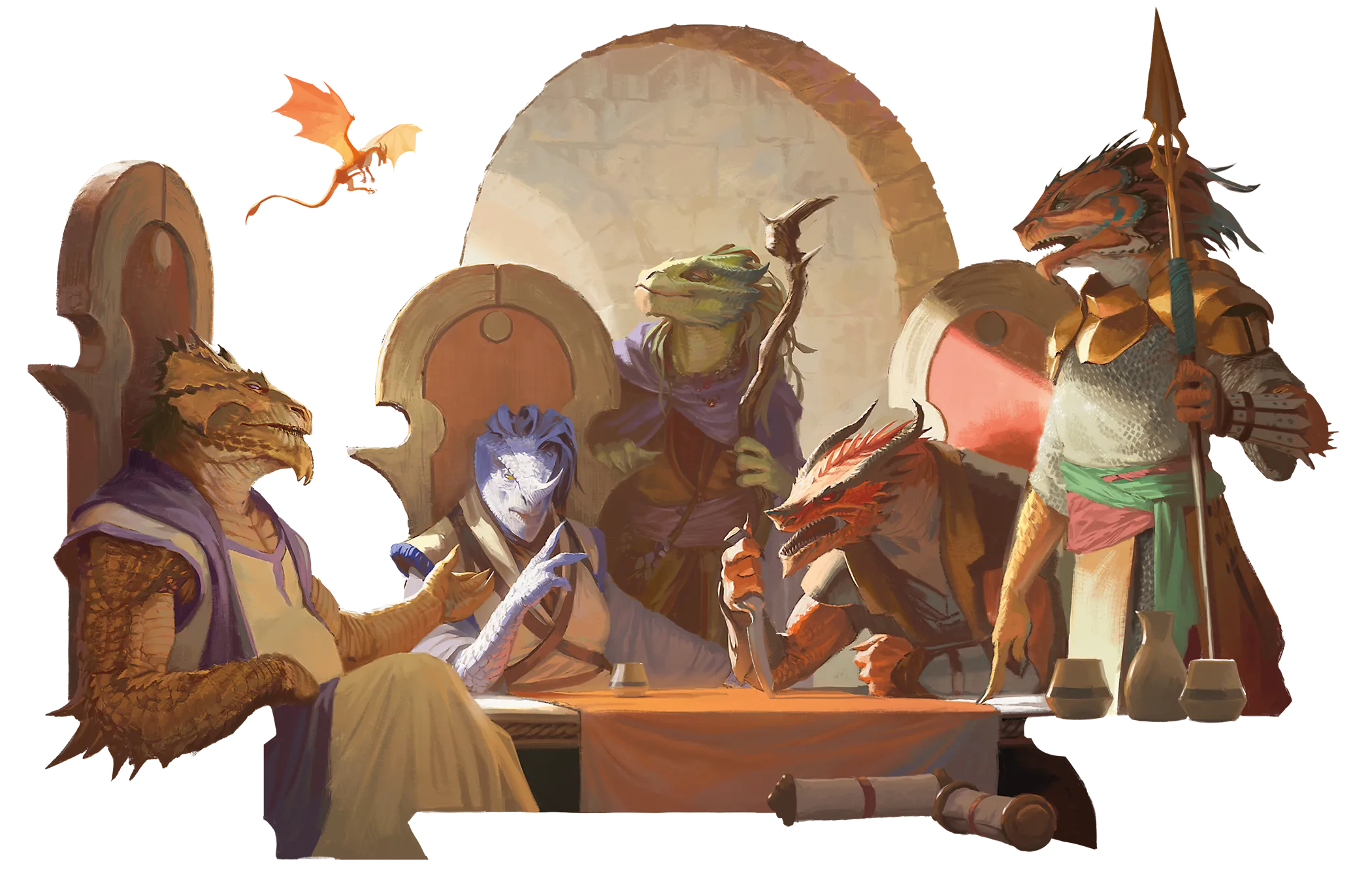 The ancestors of dragonborn hatched from the eggs of chromatic and metallic dragons. One story holds that these eggs were blessed by the dragon gods Bahamut and Tiamat, who wanted to populate the multiverse with people created in their image. Another story claims that dragons created the first dragonborn without the gods’ blessings. Whatever their origin, dragonborn have made homes for themselves on the Material Plane.