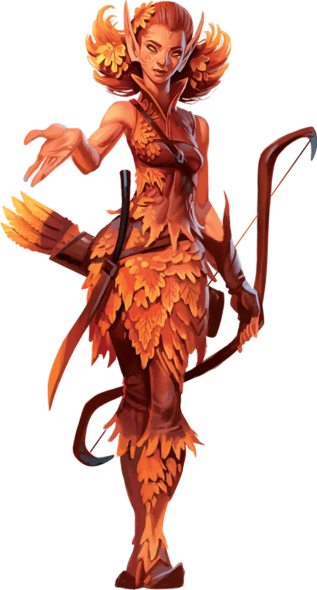 Eladrin are elves of the Feywild, a realm of perilous beauty and boundless magic. Using that magic, eladrin can step from one place to another in the blink of an eye, and each eladrin resonates with emotions captured in the Feywild in the form of seasons—affinities that affect the eladrin’s mood and appearance. An eladrin’s season can change, though some remain in one season forever. Choose your season or roll on the Eladrin Seasons table. Your Trance trait lets you change your season.