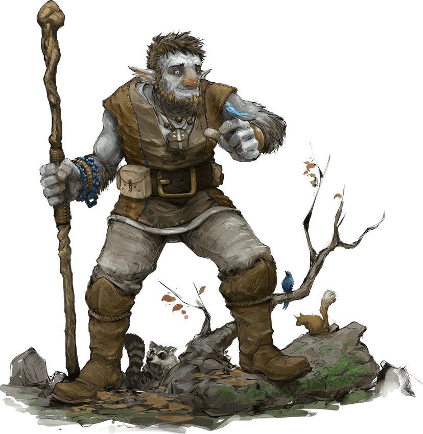 A firbolg’s magic is an obscuring sort, which allowed their ancestors to pass through a forest without disturbing it. So deep is the connection between a firbolg and the wild places of the world that they can communicate with flora and fauna.