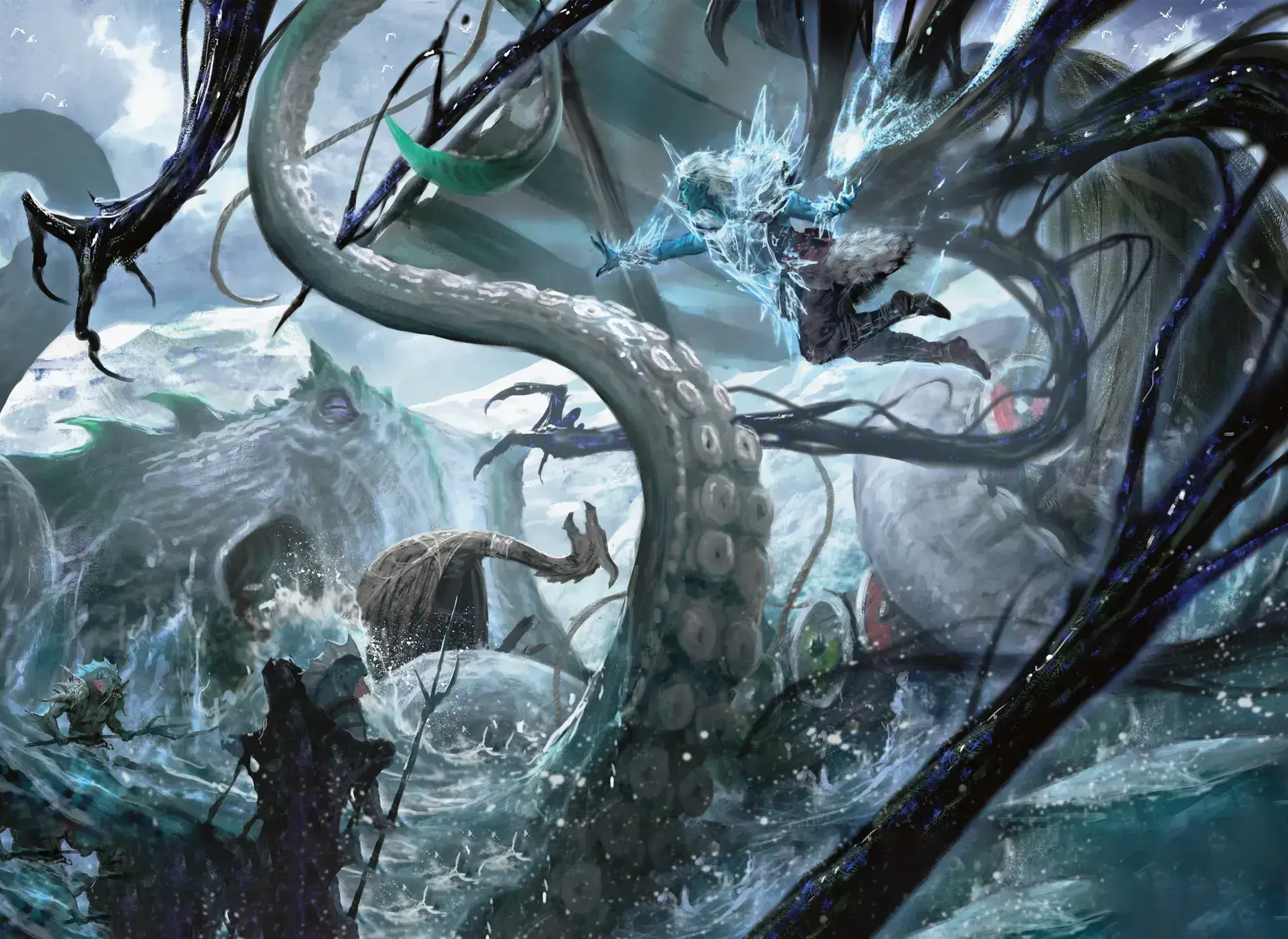 Invoking Hadar, you cause tendrils to erupt from yourself. Each creature in a 10-foot Emanation originating from you makes a Strength saving throw. On a failed save, a target takes 2d6 Necrotic damage and can’t take Reactions until the start of its next turn. On a successful save, a target takes half as much damage only.