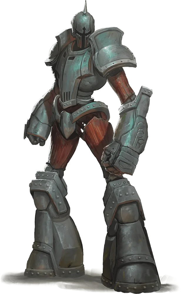Wizards and other spellcasters create shield guardians for protection. A shield guardian treads beside its master, absorbing damage to keep its master alive as long as possible.
