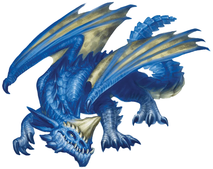 A blue dragon will collapse the caverns that make up its lair if that lair is invaded. The dragon then burrows out, leaving its attackers to be crushed and suffocated. When it returns later, it collects its possessions-along with the wealth of the dead intruders.
