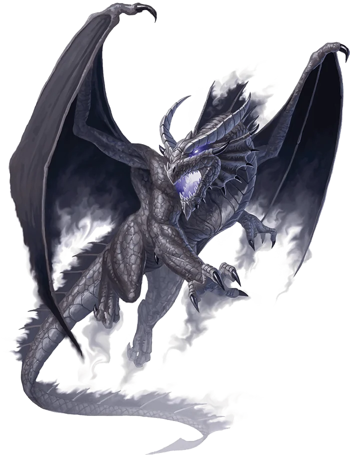 Shadow dragons are true dragons that were either born in the Shadowfell or transformed by years spent within its dismal confines. Some shadow dragons embrace the Shadowfell for its bleak landscapes and desolation. Others seek to return to the Material Plane, hungry to spread the darkness and evil of the Plane of Shadow.