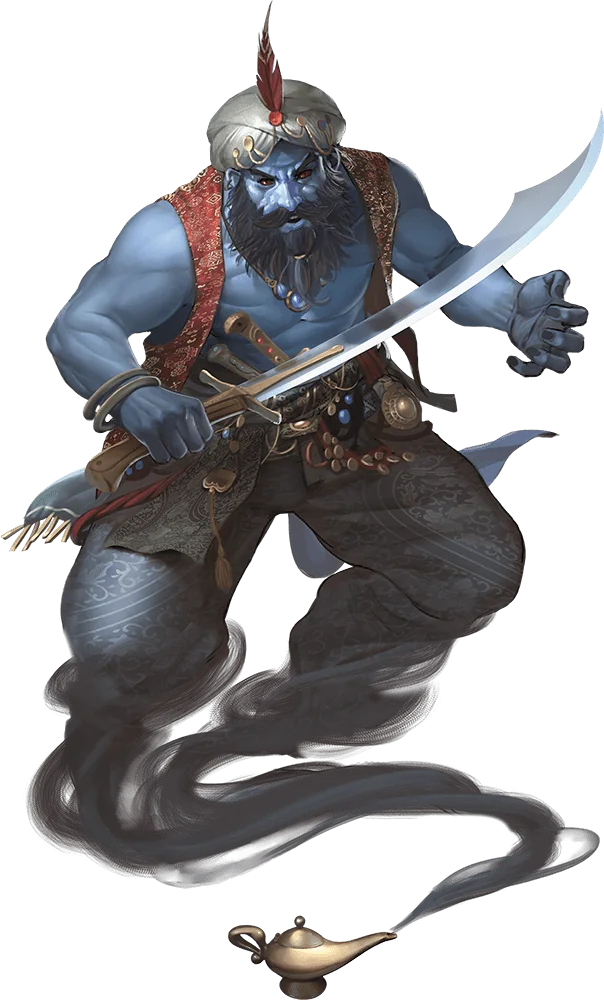 Genies are as brilliant as they are mighty, as proud as they are majestic. Haughty and decadent, they have a profound sense of entitlement that stems from the knowledge that few creatures except the gods and other genies can challenge their power.
