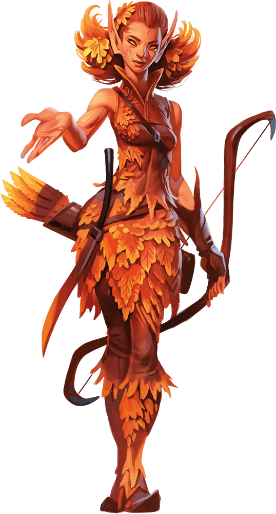 The magic flowing through eladrin responds to their emotional state by transforming them into different seasonal aspects, with behaviors and abilities that change with their forms. Some eladrin might remain in a particular aspect for years, while others run through the emotional spectrum each week.