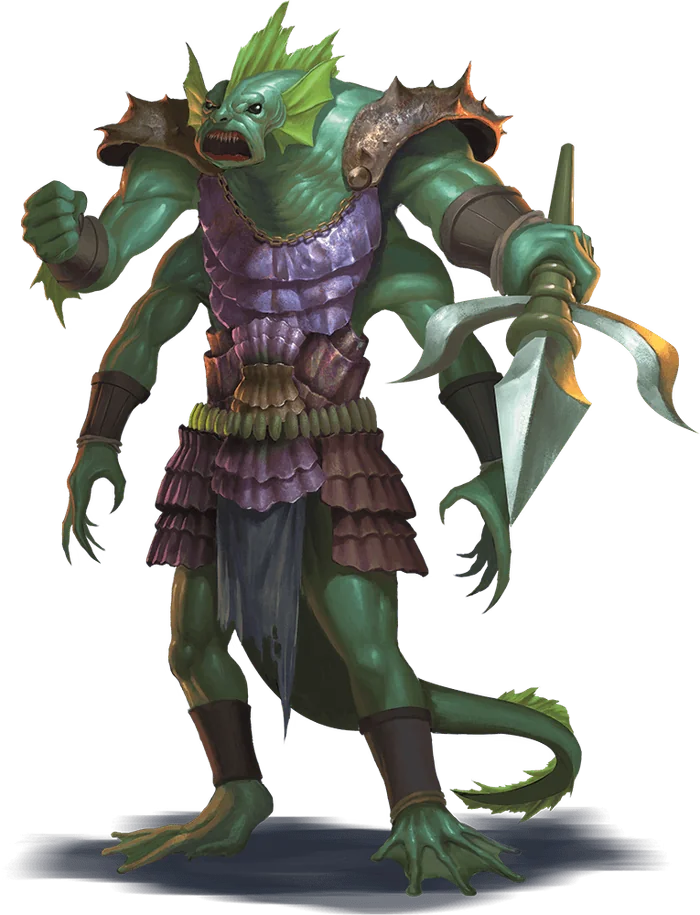 The self-styled rulers of sahuagin ocean domains are massive mutant males that grow second sets of arms. They are terrible foes in battle, and all sahuagin bow down before these powerful barons.