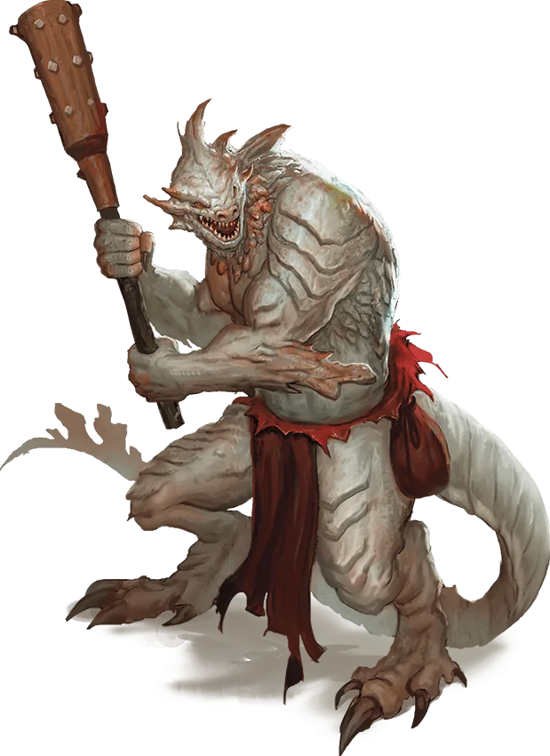 The savage, degenerate troglodytes squat in the shallow depths of the Underdark in a constant state of war against their neighbors and one another. They mark the borders of their territories with cracked bones and skulls, or with pictographs painted in blood or dung.