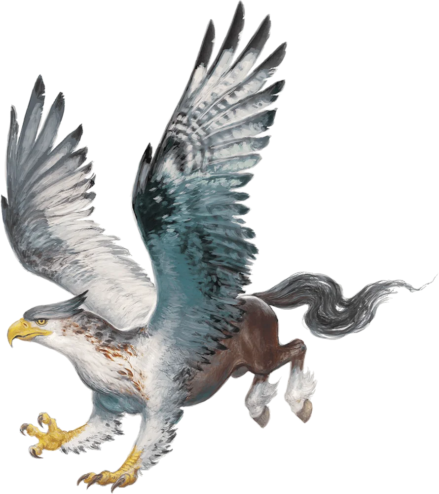 A beast whose magical origins are lost to history, a hippogriff possesses the wings and forelimbs of an eagle, the hindquarters of a horse, and a head that combines the features of both animals.