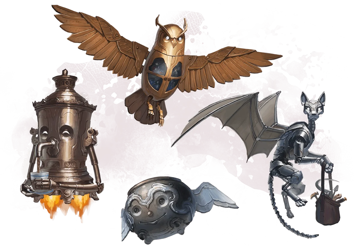 You determine the homunculus’s appearance. Some artificers prefer mechanical-looking birds, whereas some like winged vials or miniature, animate cauldrons.