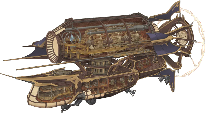 Haloed by their enormous rings of elemental energy, Lyrandar Air Cruisers cast imposing shadows as they sail through the skies. These airships are the largest and most iconic means of air travel in “Khorvaire”, ferrying the wealthy and elite across the “Five Nations” and beyond. Though airships have become marginally more common since their introduction a few years ago, a fully operational air cruiser is still an impressive sight.